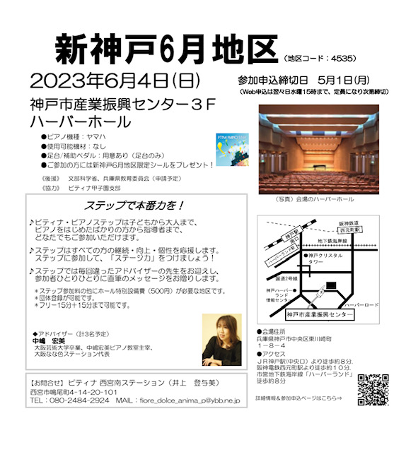こうべアクアマリンステーション初のピティナステップを開催致します。